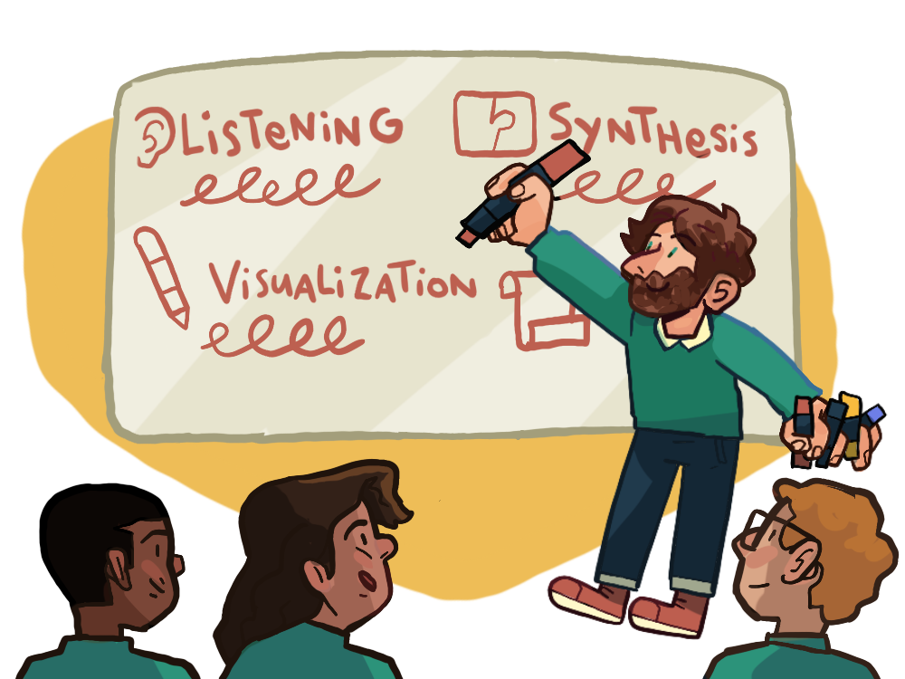 Graphic recording artists knit together a host of creative, analytical, and design thinking skillsets. While some come to the field with a background in illustration, and others with a background in consulting, there are a few core competencies any good visual note-taker will have.